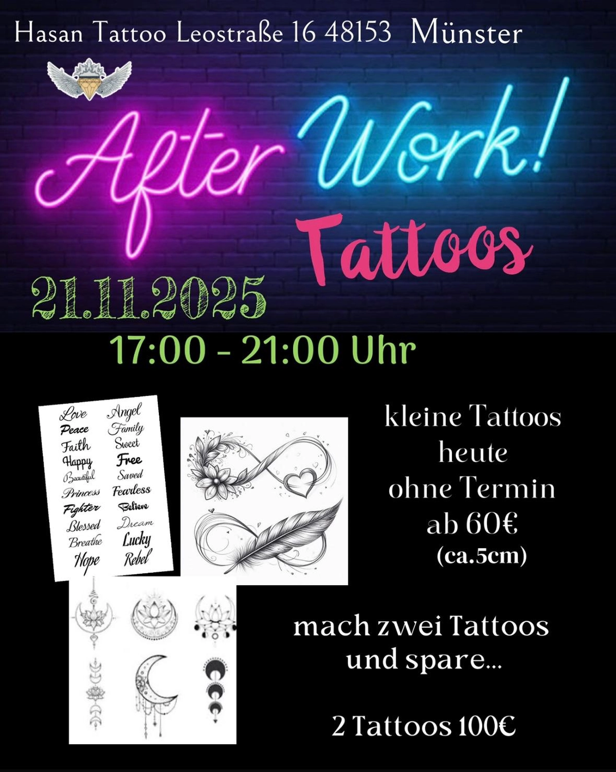 Für Tattoo Termine und Zeichnungen machen wir schriftliche Verträge und verlangen eine Anzahlung von einem Drittel des Endpreises (Minimum 50 €), der dann beim Termin vom Endpreis abgezogen wird.